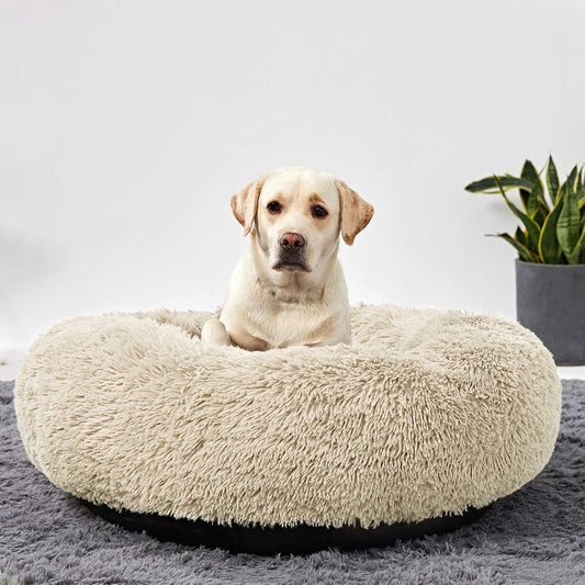 Large Washable Dog Round Bed - Comfortable Calming Donut Cuddler
